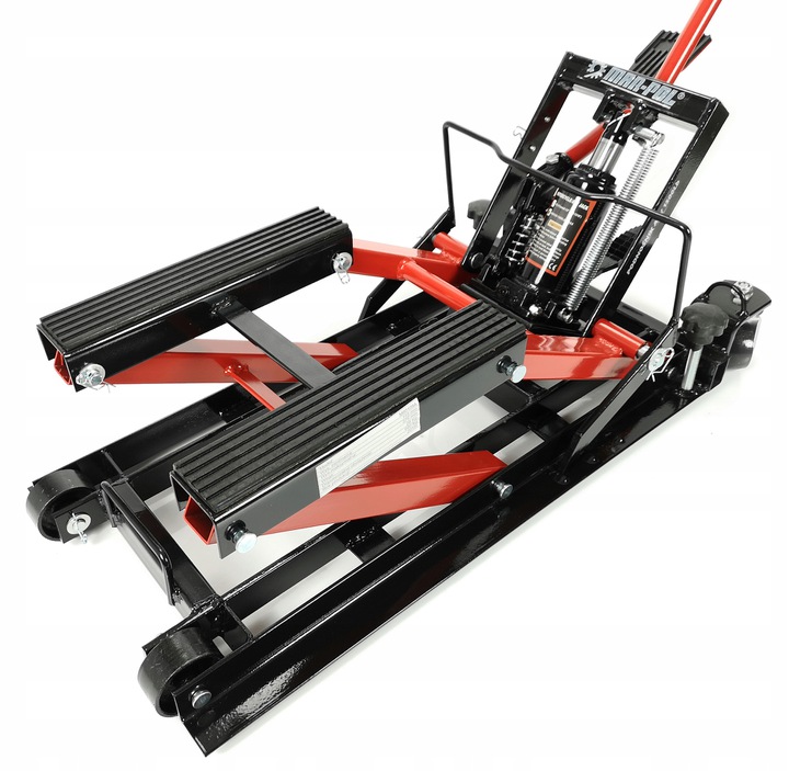 Urządzenie wyposażone w 2 praktyczne pedały nożne, które pozwalają na podniesienie oraz opuszczenie motocykla bez dużych nakładów siły.